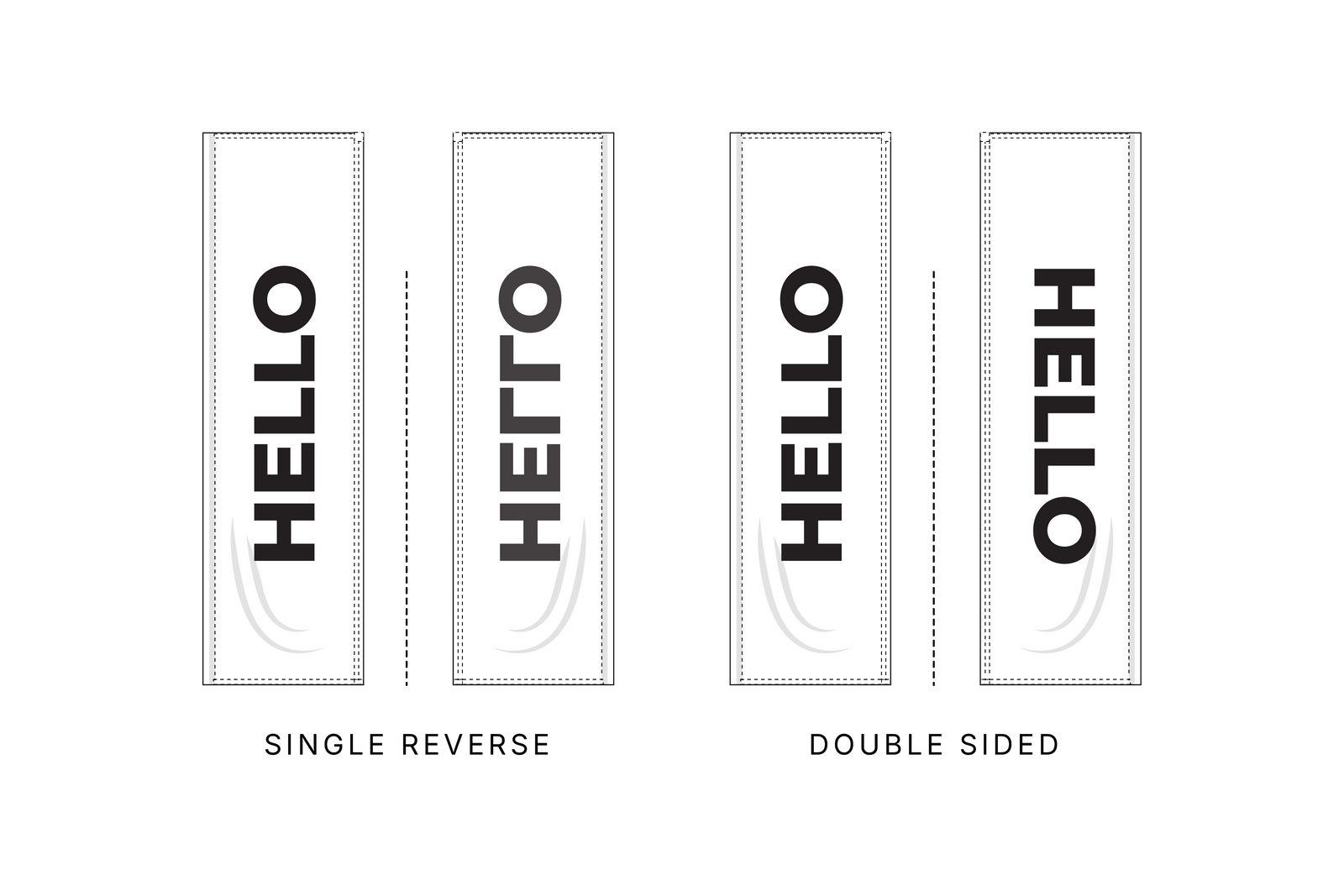 The print option you choose will determine how your design looks on the back side of your custom feather banner (the front will look the same with either selection). You can't go wrong with either option, though each option has times where it might be the preferred choice. Read below to learn more about our single reverse and double sided print options.