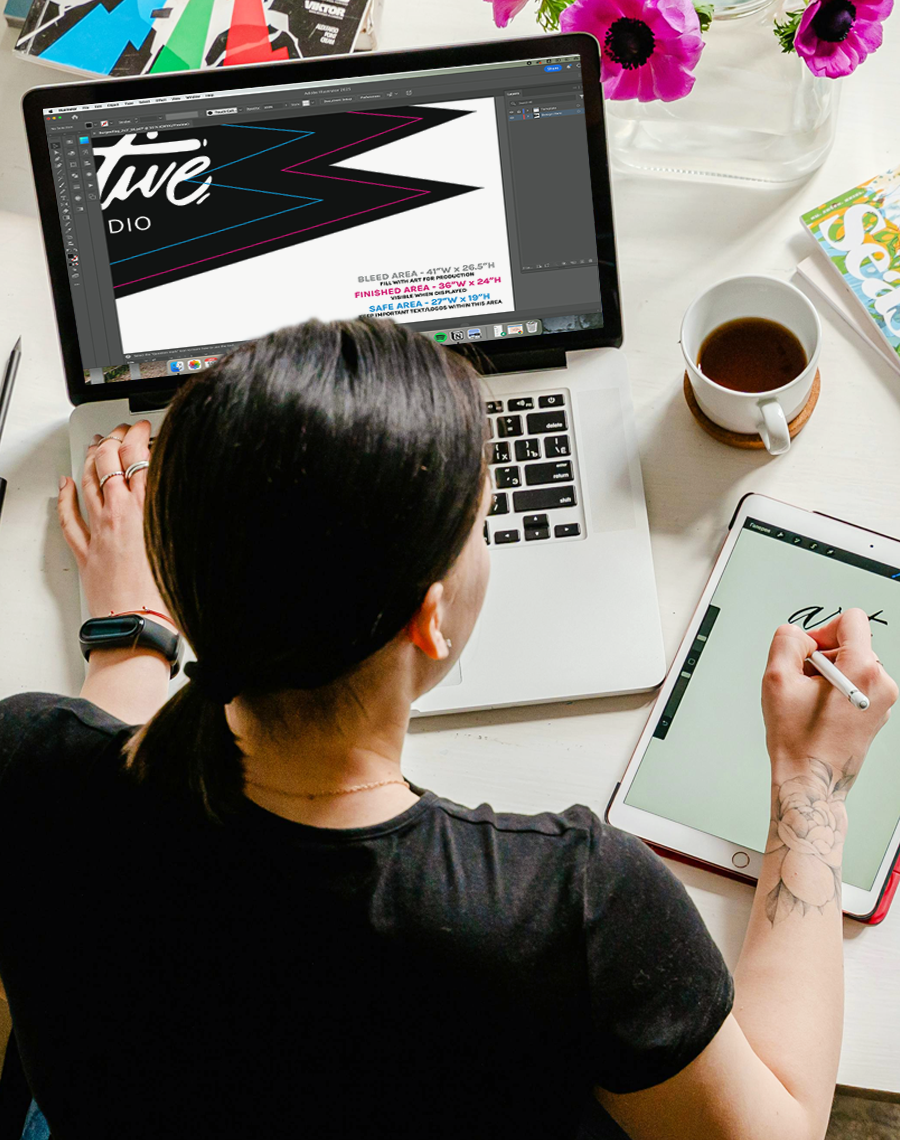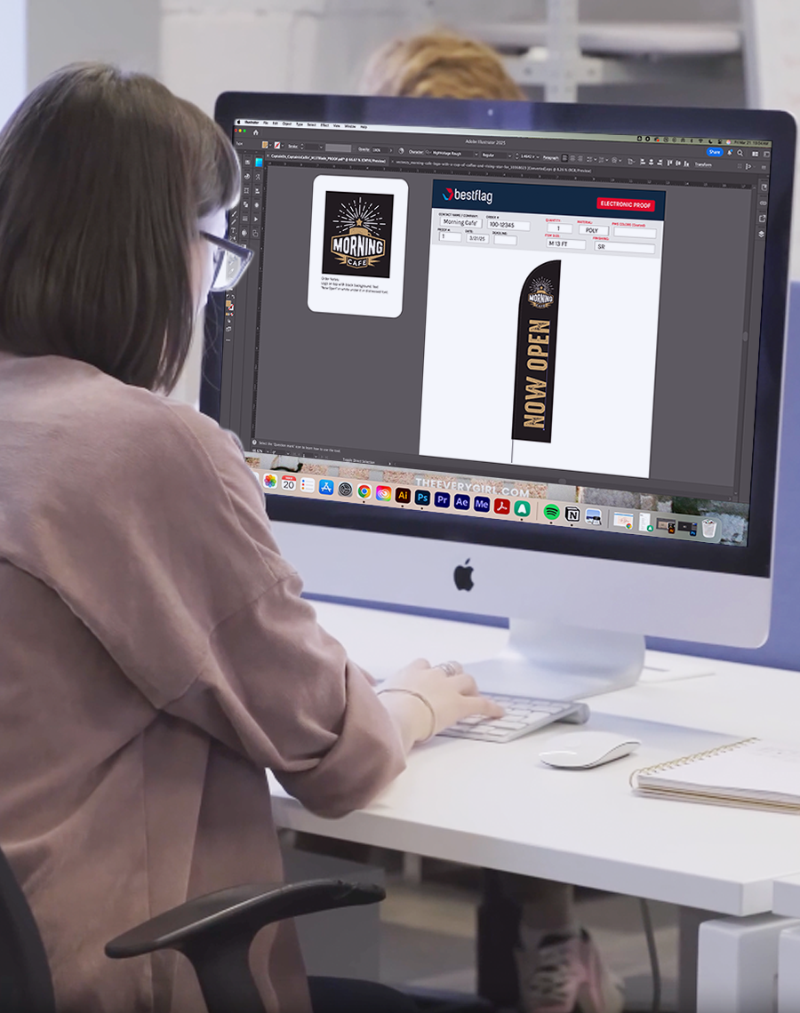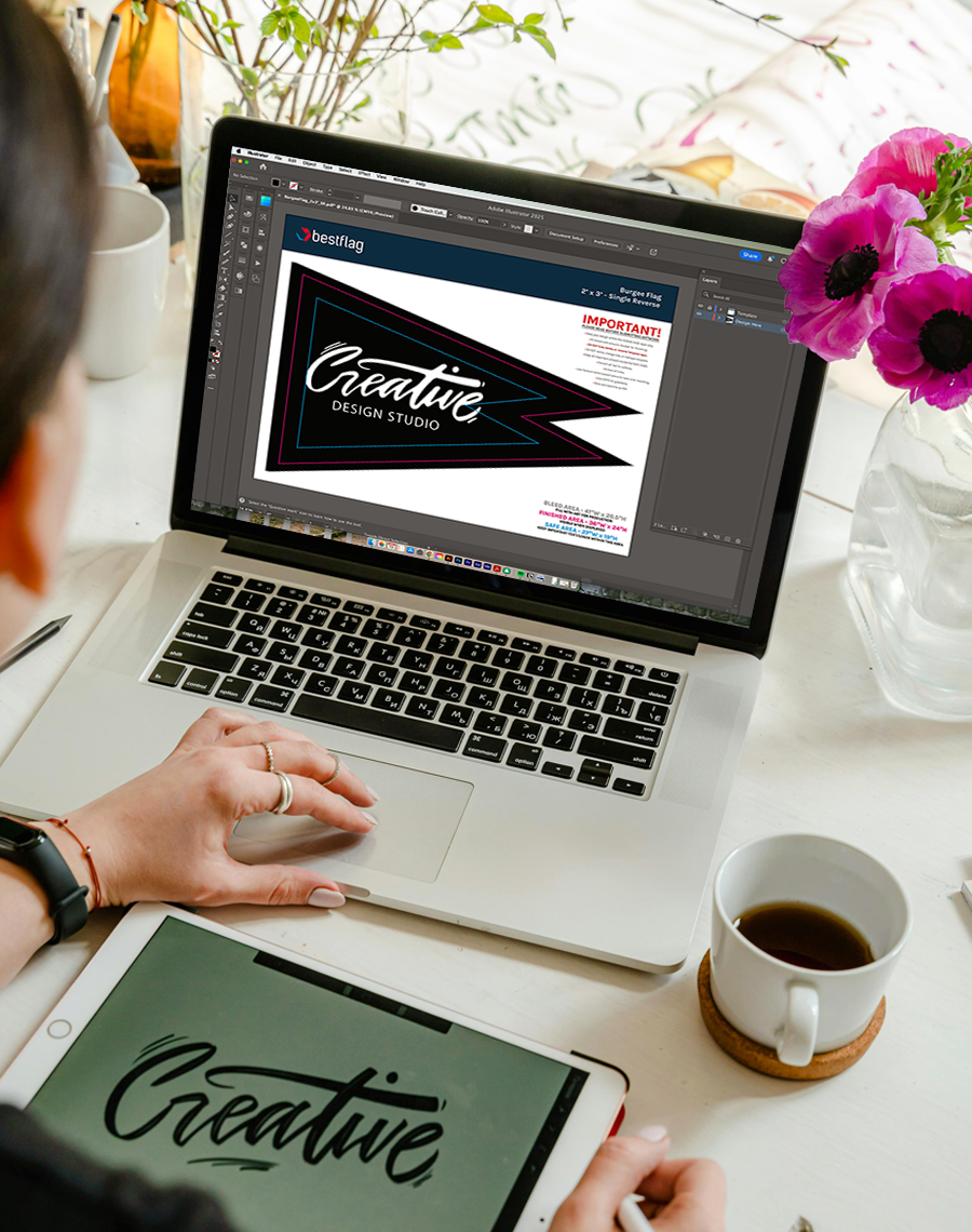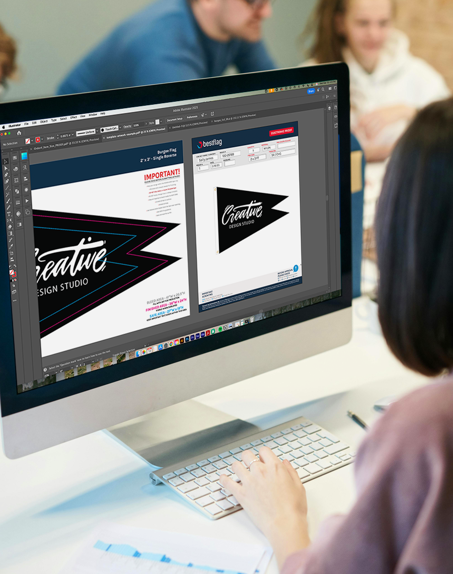 Looking to go to the next level? Work with our senior creative team to create an agency-quality design or program. In addition to getting an unbelievable result for your custom flags and banners, this service includes all of the original Adobe CC files for you to use however you want for future projects.