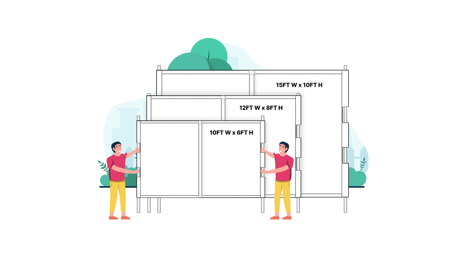 Our breakaway banners are offered in sizes 6' x 10', 8' x 12', and 10' x 15'.