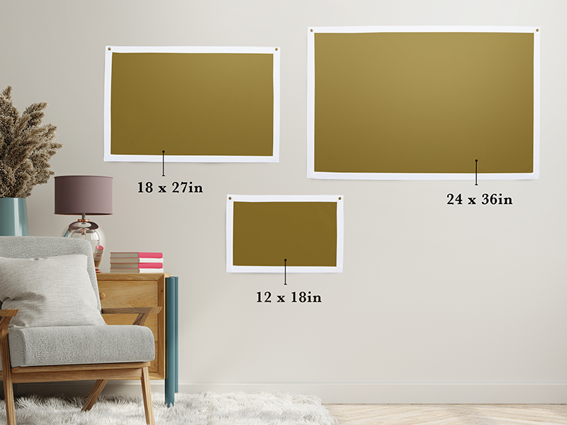 We offer three sizes of our Rectangle Camp Flag. Our most popular size is the 18" x 27", but we also offer a 12" x 18" option for smaller spaces and a 24" x 36" for anyone wanting to make an even bigger statement.