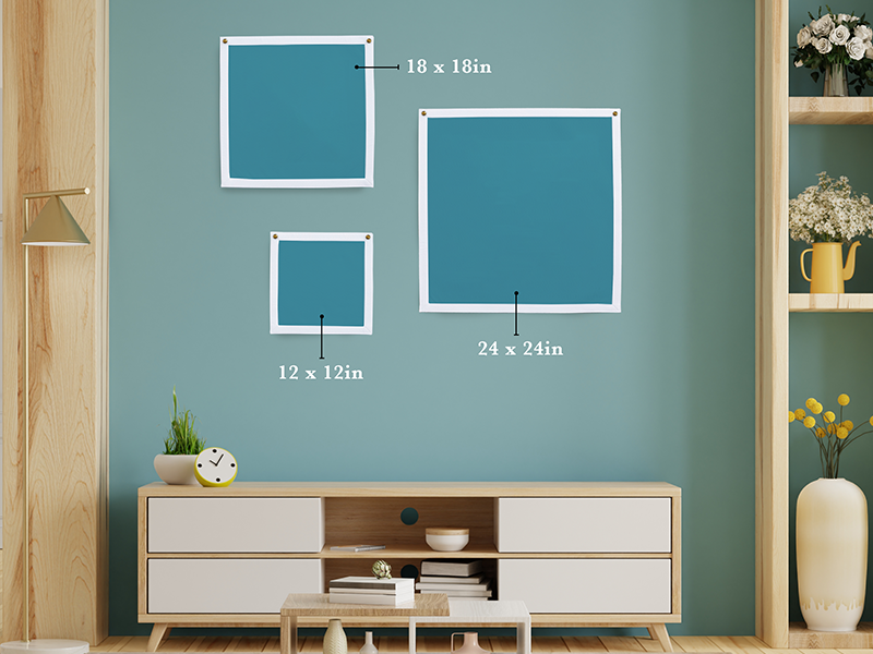 We offer three sizes of our Rectangle Camp Flag. Our most popular size is the 18" x 18", but we also offer a 12" x 12" option for smaller spaces and a 24" x 24" for anyone wanting to make an even bigger statement.