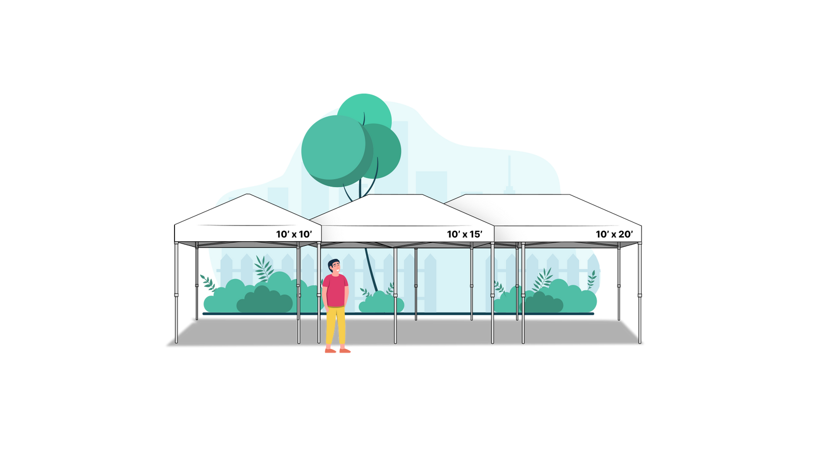 Our Premier Custom Tent is available in the following sizes: 10' x 10', 10' x 15', and 10' x 20'.